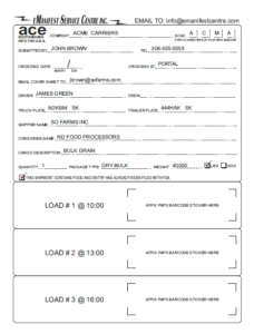 We want to make eManifest as easy as possible for you! For frequent customers, we would be happy to design an eManifest Request Form that’s just for you. To save you time and help organize your border crossing documents, these forms can be custom tailored for your situation, including pre-entering repeat information. To get an idea of how our Custom Quick Trip forms can help make eManifest easy for you, please see the below sample form: